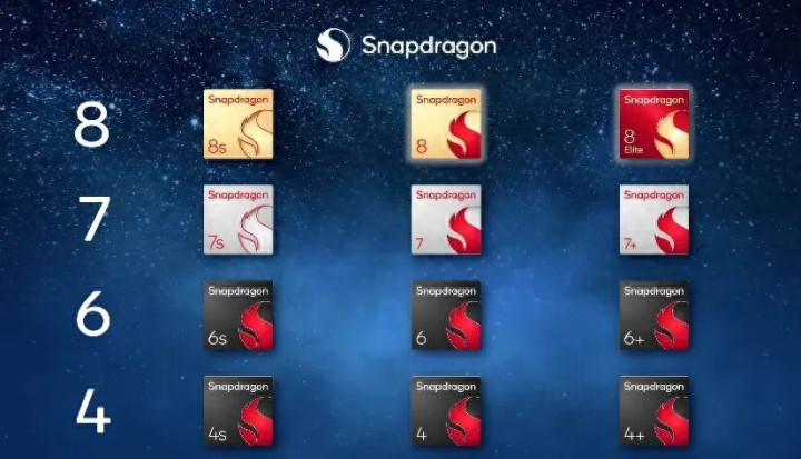 其中,骁龙8系为骁龙8S、骁龙8、骁龙8至尊版;骁龙7系为骁龙7S、骁龙7、骁龙8+;骁龙6系为骁龙6S、骁龙6、骁龙6+;骁龙4系为骁龙4S、骁龙4、骁龙4+。